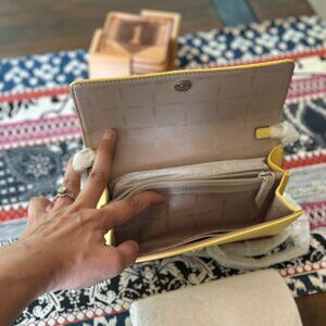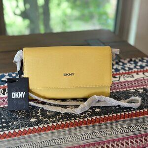 DKNY Gia Wallet on a Silver Chain Convertible Crossbody Yellow Leather NWT