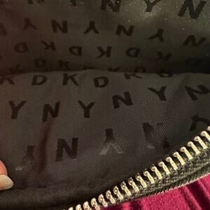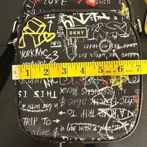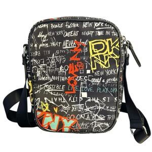 DKNY Gigi Double Zip Black Graffiti Adjustable Strap Nylon Crossbody Bag