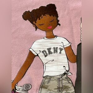DKNY Girl’s Pink Short Sleeve T-Shirt Skater Best Friends Skateboard Roller Sz. 7