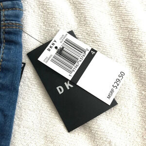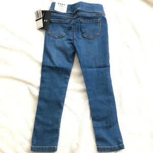 Girls' blue pull on jegging jeans by DKNY. Size 4. Tags attached. No flaws. Stretch. W667