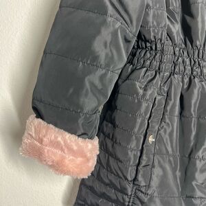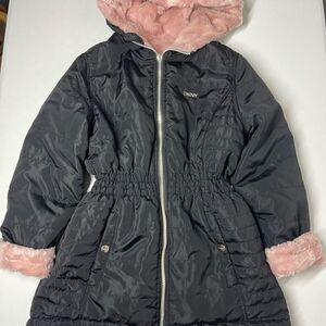 DKNY Girls Reversible Full Zip Elastic Waist Faux Fur Parka Jacket M (10-12)