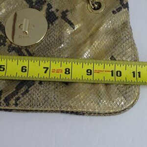 DKNY Gold Metallic Python Snake Print Chain Strap Shoulder Bag Crossbody W/Charm Accent