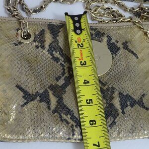 DKNY Gold Python Snake Print Chain Strap Shoulder Bag Crossbody W/Charm Accent