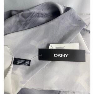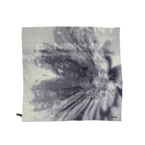 DKNY Gray Logo Square Silk Scarf Bandana Italy 26 X 26