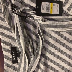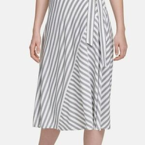 DKNY Gray & White striped A Line wrap style skirt