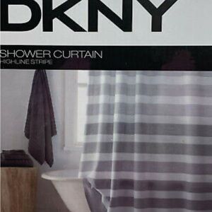 Enhance your bathroom with the DKNY Gray Shower Curtain. Its elegant stripe design adds a modern touch to any decor.