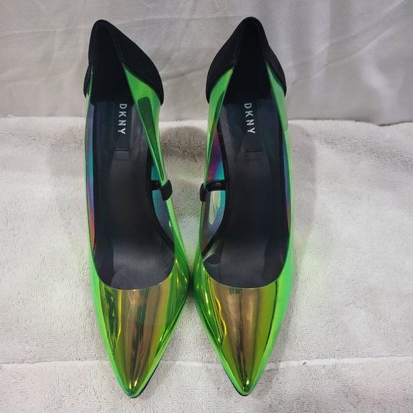 These shoes are fabulous. They are an irridescent green and give you a ranges of greens, blues, yellow and pinks depending on the light and angles. They are absolutely beautiful.