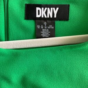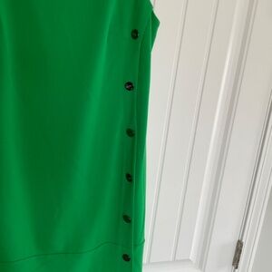 DKNY button shift lined green dress. Size 16. Back zipper and sleeveless. Pit to pit us 22”. And length is 38”.