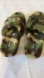 Plush DKNY slippers with a stylish faux fur pattern. Features green and brown tones.