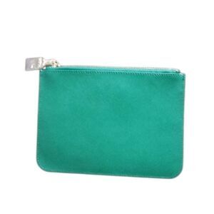 This DKNY clutch in a striking green hue is crafted from smooth leather, offering a sleek and minimalist design. Its compact size makes it ideal for carrying essentials, while the metallic zipper closure ensures your items are secure. Perfect for adding a touch of elegance to any ensemble.8 1/2 width 6 1/2 height
