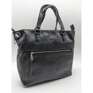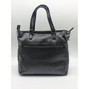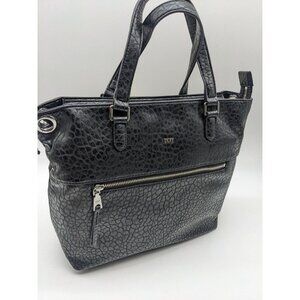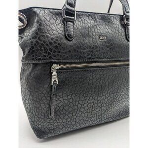 DKNY Gregorio textured faux-leather zip top medium tote satchel bag - BLACK