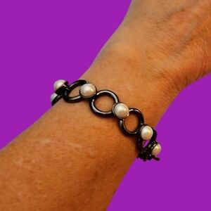 DKNY Gunmetal Pearl Link Bracelet