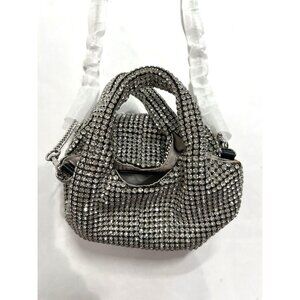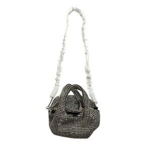 Description from retailer: DKNY Gwen bag Black faux leather Two top handles, chain shoulder strap, crystal embellishments, silver-tone hardware Fully lined interior Magnetic tab closure at open top. Color: gray