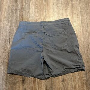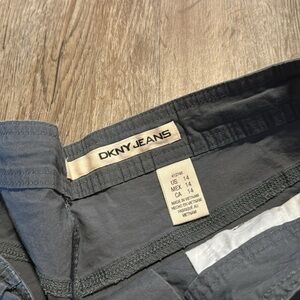STYLE: DKNY designer hybrid grey shorts, trendy, longer in length but not quite bermudas, button details, deep pockets