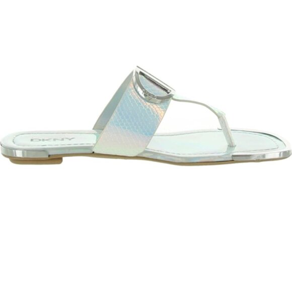 DKNY Halcott Flat Thong Sandals Snake Print Python Silver Iridescent US 6. Retailed $39.99. In excellent like new condition used only once on a cruise. Comes in Original Box. Please see other sandals in my store.