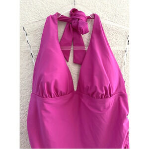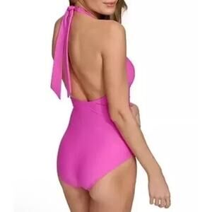 DKNY Halter Mio One Piece Swimsuit Underwire Size L Pink