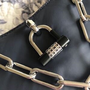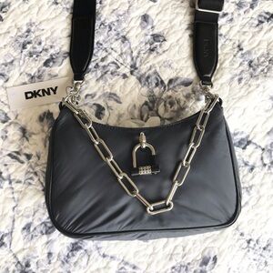 DKNY Harper Small Chain Crossbody. Accented with a chunky chain handle, this crossbody by DKNY is crafted in soft weather-resistant nylon in a chic style.