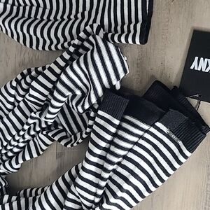 NEW DKNY Striped Beanie hat and scarf with tall cozy socks