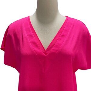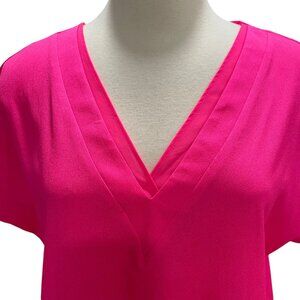 DKNY Hot Pink V-Neck Blouse Medium Chic Layered Flowy Comfy Minimalist Feminine