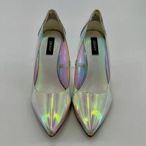 DKNY Iridescent Holographic Pointed Toe Heels Size 6 Stiletto Pumps Womens