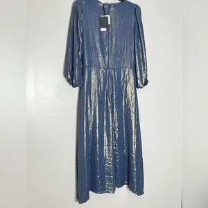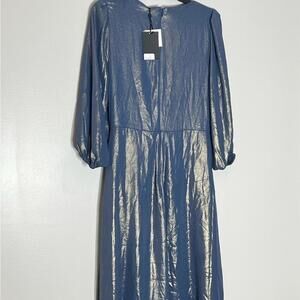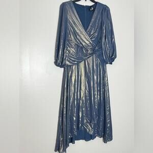 DKNY Iridescent Twisted Balloon-Sleeve evening Sleeve Dress -Denim Gold size 6