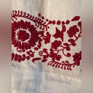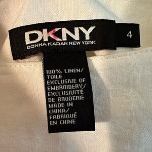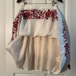 DKNY Ivory 100% Linen Lined A Line Skirt Red Embroidery Pockets Luxury CLEAN!