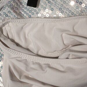 DKNY Ivory Bandeau Under Wire Built in Bra Sequin Banded Swimsuit Women’s Size 6