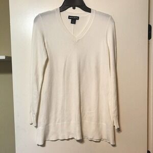 DKNY Ivory Long-Sleeve V-Neck Sweater Tunic SzS Pre-Owned