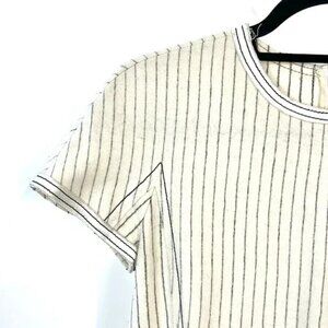 DKNY Ivory Mixed Media Pinstriped Shift Midi Dress
