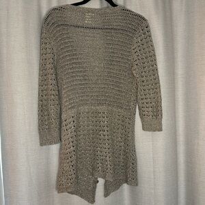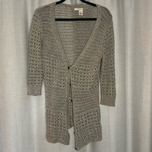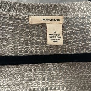 STYLE: DKNY Jeans 3/4 sleeve open button up loose knit cardigan, greyish beige color, metal buttons, cotton/acrylic blend