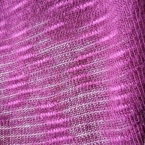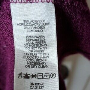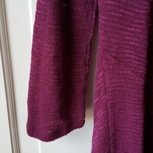 Textured and semi-sheer sweater. Fall's hottest color: a beautiful burgundy maroon color. Great for hiding a tummy! Pre-owned in good condition; no holes, stains or tears but gently worn / some pilling.