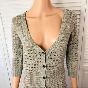 Details: DKNY jeans deep v-neck semi sheer cardigan sweater