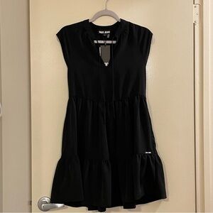 DKNY JEANS Tie Neck Tiered Dress in Black