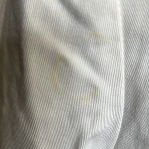 White DKNY jacket. There is discoloration from age. Size 10.