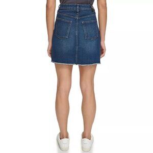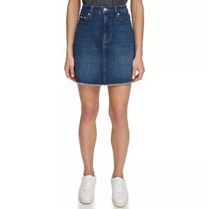 DKNY Jean Skirt Dark Wash Mid Length Denim Skirt Comfort Stretch Sz 10 NWT