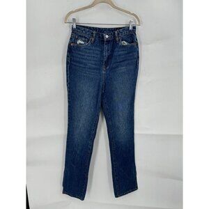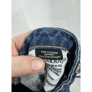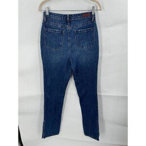 DKNY Jean Women 27 Blue The Cooper Long Slim Straight Denim Distressed Slit Hem