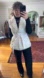 DKNY Jeans 100% Cotton Ivory Corduroy Faux Fur Collar/Lining Tie Belt Long Vest