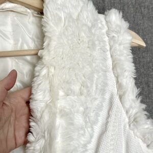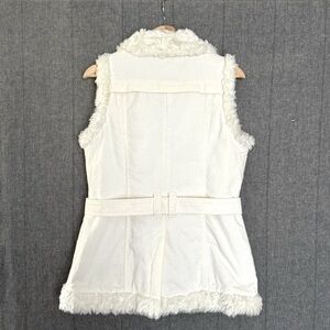 DKNY Jeans 100% Cotton Ivory Corduroy Faux Fur Collar/Lining Tie Belt Long Vest Size Extra Small