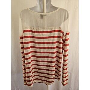 DKNY Jeans Blouse Womens Ivory Striped Lightweight Shirt Size Large