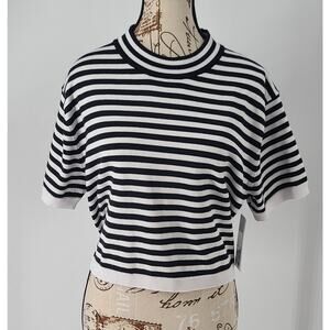DKNY Jeans Breton stripe women's crop top black/white Size Large Fisherman