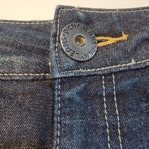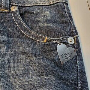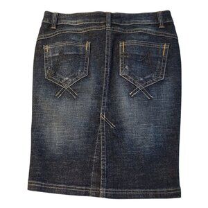DKNY Jeans Denim Pencil Skirt Women's Size 9 Heart Coin Embroidered Y2K Vintage