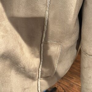 Good Condition! DKNY Faux Suede Sherpa Lined Jacket. Mock neck, chic neutral everyday winter jacket.Streetwear outerwear