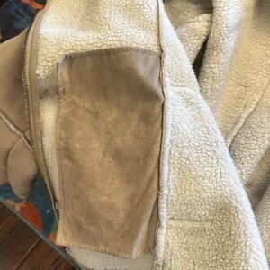 DKNY Jeans Donna Karen New York Tan Faux Suede Sherpa Lined Zip Up Jacket
