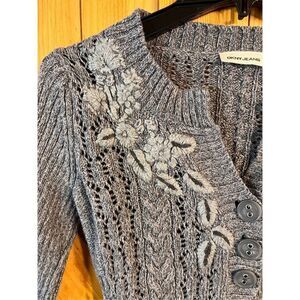 DKNY Jeans Gray 3/4 Sleeve Cardigan Sweater with Floral Detail Small (2552)