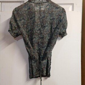 Green/Blue Paisley Two Piece DKNY Dress w/gold strains of thread throughout