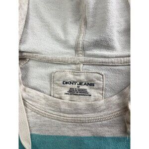 DKNY Jeans Hooded Sweatshirt Women's Medium Gray Blue Stripe Pullover Hoodie