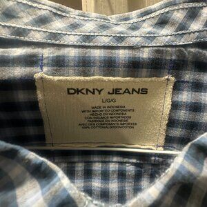 DKNY Jeans Men’s Blue Checkered Long Sleeve Button-Up Shirt – Size Large