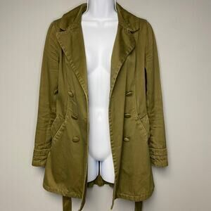 DKNY Jeans Military Style Olive Green Trench Coat Womens Size S