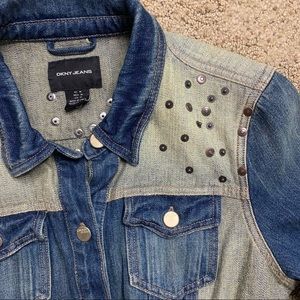 DKNY Jeans NWT studded two toned lightly distressed denim jean jacket