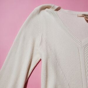 DKNY Jeans Off White Cream Ivory Knit V Neck Sweater